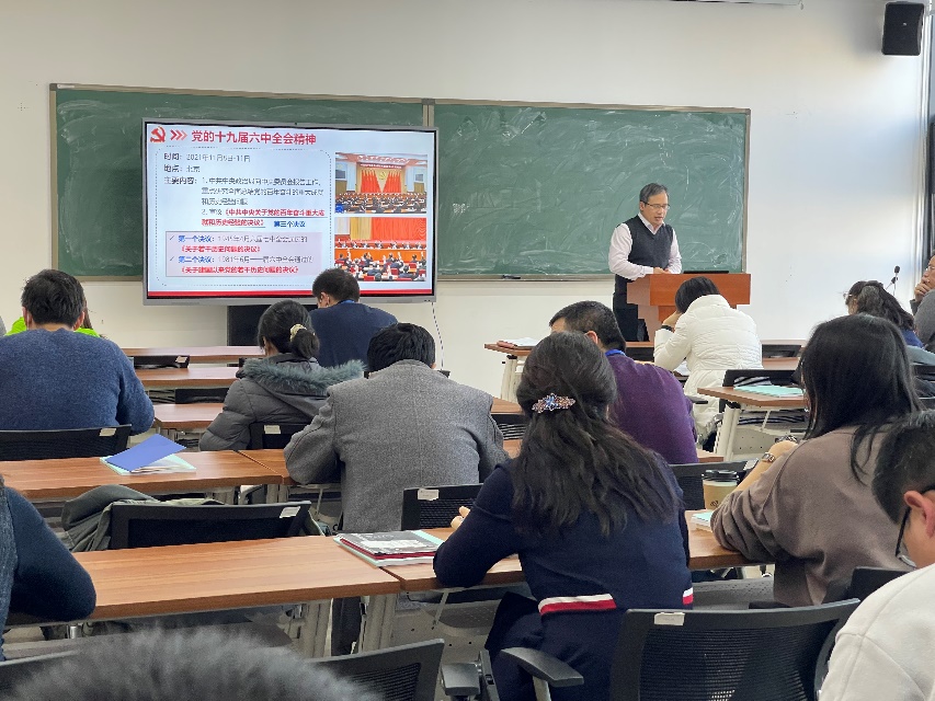 为深入学习贯彻党的十九届六中全会精神,2021年12月29日,新葡的京集团350vip8888在沙河校区E404召开全体教职工大会,全院80余名教职工参加会议,韩德仁院长做党的十九届六中全会精神宣讲,会议由党委书记袁星主持。