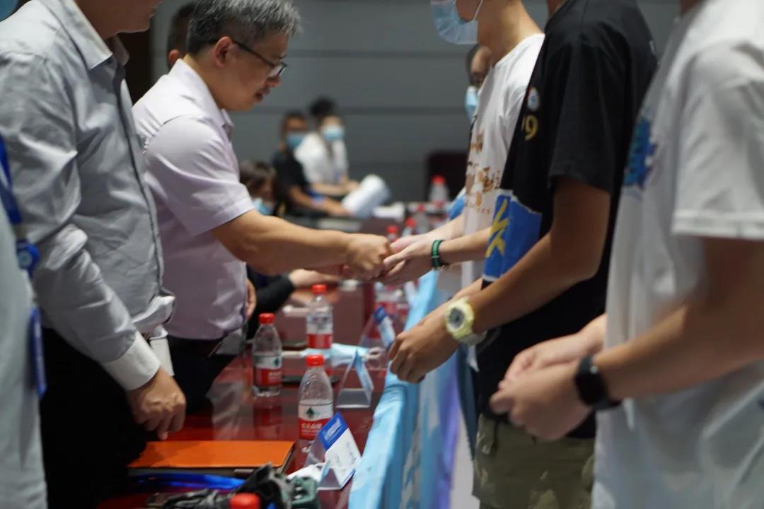 在开学仪式的最后,学院领导为新生代表授予院徽。
