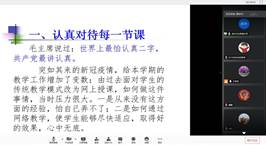 北航学院和佩佩老师,从数学分析课程群与北航学院在线授课联络员的角度,对课程群全体老师的辛苦工作表示由衷的感谢,并对下学期开课如何保持本学期优良作风提出了建议。助管江南同学及助教李芹芹、厉铮泽同学从助教的角度分享了本学期在线教学的感受。自由发言阶段,课程组的老师们都踊跃发言,总结本学期工作经验,就下学期教学工作展开讨论。