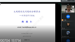 7月4日下午,夏令营特别邀请了郑志明院士和韩德仁院长为营员们做了两场学术报告。郑院士首先作了题为《数理融合的曲面数控加工新方法》的线上学术报告,高屋建瓴地介绍了如何将数控复杂曲面加工与曲面所蕴含的物理特性结合,对复杂曲面引入流线场,将其保向共轭到欧氏空间线性流线场,进而创立了流线场模型直接驱动的“一步式”整体连续高精度高效加工新方法。第二场报告数学学院院长韩德仁教授以生动幽默的语言,从深度学习引入,循序渐进地讲解了最优化理论和方法,并详细介绍了在机器学习领域有着广泛应用的交替方向乘子法及其最新进展。两场学术报告内容丰富、深入浅出、气氛热烈,打开了营员们的学术视野,赢得了营员们的高度评价,也更坚定了学习数学、继续深造的志向,报告会在参会师生的互动交流中圆满结束。