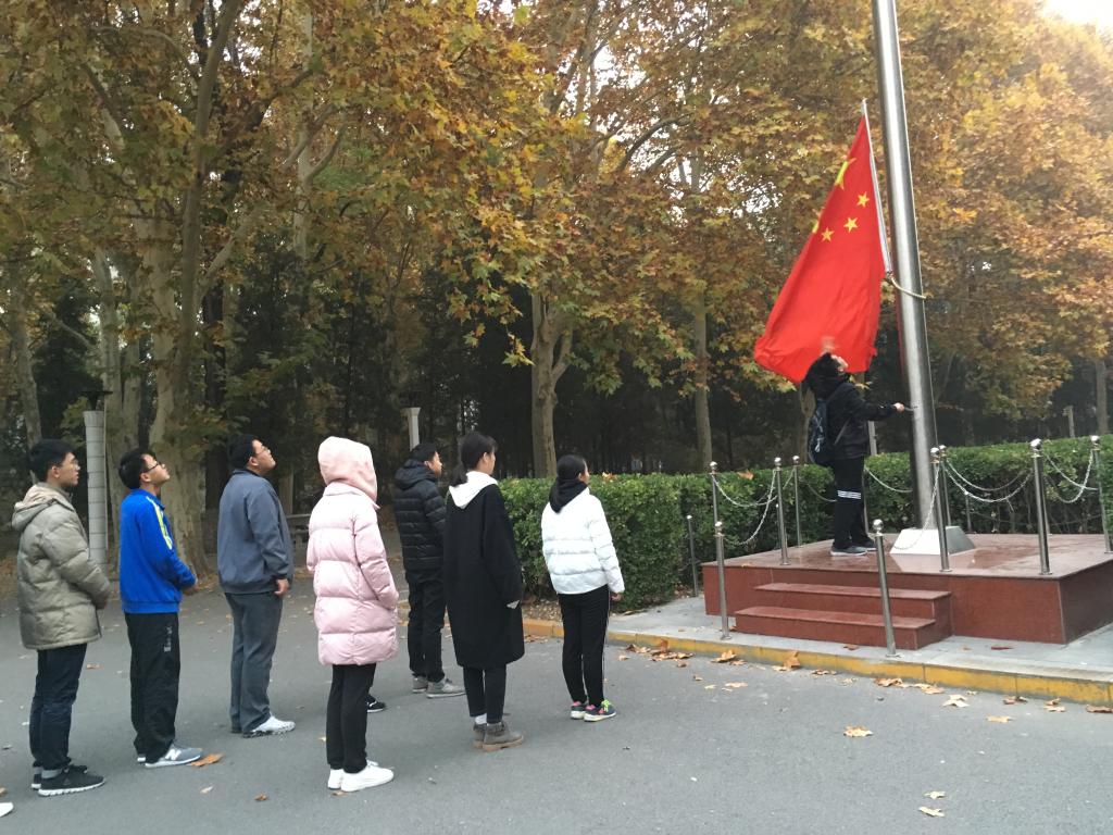 2018年11月13日至17日,北京航空航天大学学院路校区升国旗仪式由数学与系统科学学院各小班组织举行。在大班团支书姜亦申的统一安排下,本周内升旗仪式按照24班、22班、21班和23班的顺序从周二到周六依次进行。