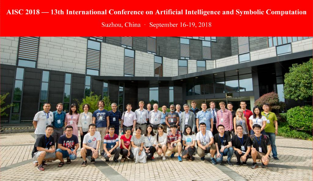9月16日至19日,由北京航空航天大学和北航苏州创新研究院主办的第13届国际人工智能与符号计算会议(13th International Conference on Artificial Intelligence and Symbolic Computation,AISC 2018)在苏州清山会议中心召开。会议由欧洲科学院院士、北京航空航天大学教授王东明和德国卡尔斯鲁厄理工学院教授Jacques Calmet担任大会主席,英国爱丁堡大学教授Jacques Fleuriot担任程序委员会主席。英国皇家科学院院士、爱丁堡大学教授Alan Bundy、欧洲科学院外籍院士、南京大学教授周志华、纽约大学库朗研究所教授Chee K. Yap作大会特邀报告,英国巴斯大学教授James H. Davenport、加拿大劳里埃大学教授Ilias S. Kotsireas、奥地利因斯布鲁克大学教授Cezary Kaliszyk和北京航空航天大学陈肖宇博士作分会邀请报告。国内外近五十名专家学者参加了会议。