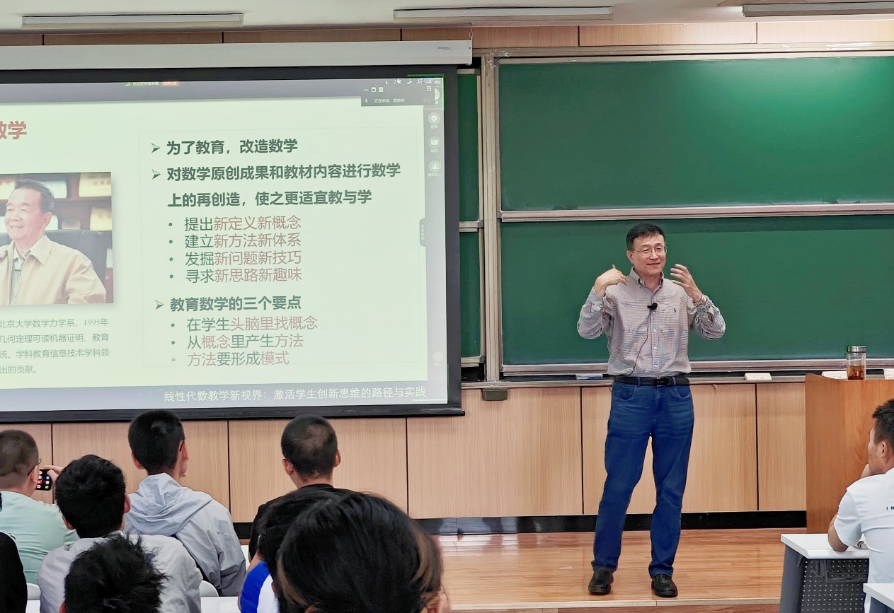 2025年9月21日上午,应数学拔尖人才培养模式改革(华罗庚数学实验班)虚拟教研室、大学数学课程群虚拟教研室(西安交通大学)、面向人文社科学生的大学数学课程群虚拟教研室(中国人民大学)联合之邀,国家级教学名师、中国高等教育学会教育数学专业委员会理事长、上海大学王卿文教授在北京航空航天大学沙河校区作了题为“线性代数教学新视界——激活学生创新思维的路径构建与实践探索”的精彩报告,线上线下近300名师生同步聆听。报告由北京航空航天大学蓝天教授杨义川主持。