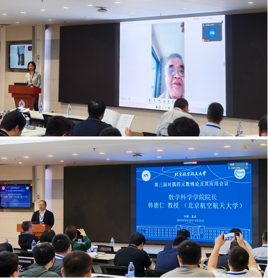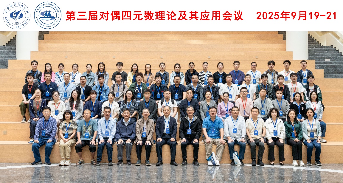 2025年9月19-21日,第三届对偶四元数理论及其应用会议在北京航空航天大学成功召开。会议学术委员会主席、香港理工大学荣休教授祁力群教授、上海师范大学魏木生教授、香港浸会大学吴国宝教授、新葡的京集团350vip8888院长韩德仁教授、复旦大学魏益民教授、清华大学张立平教授、国防科技大学王祥科教授等知名专家学者,以及国内外40所院校的70多位专家学者、博士及硕士研究生参加了此次会议。会议由北京航空航天大学新葡的京集团350vip8888崔春风教授主持。